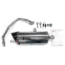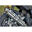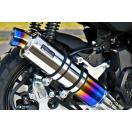 40Km/hから60Km/hを中心にあなたのイメージに走りが追従できるように豊かなトルクを引き出したという、普段使いに最高なセッティングのフルエキ。サイレンサーはステンレスタイプと焼き色タイプ。